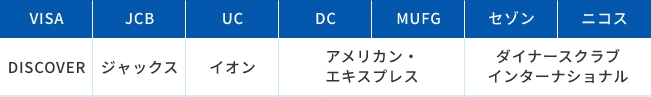 | 各種カードでのお支払いについて | お買い物の際、現金以外に以下の通り各種クレジットカード、ギフト券がご利用いただけます。ご利用いただけるクレジットカード会社※一部ご利用いただけない店舗がございます。