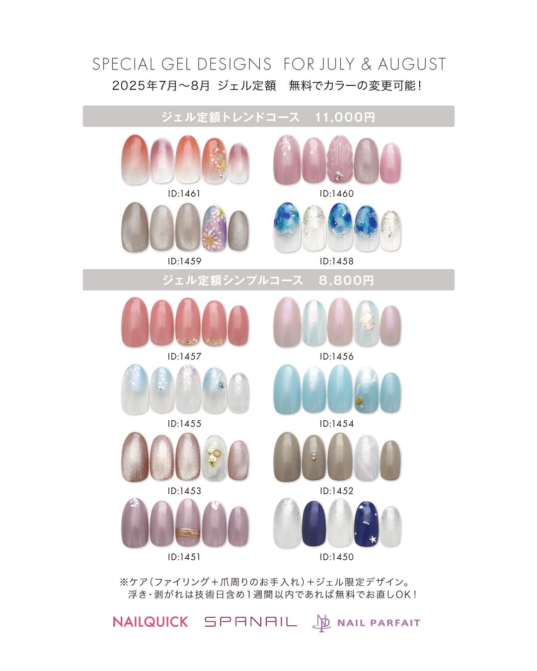 ジェル定額7月~8月定額限定のハンドネイルデザインをご紹介します♪